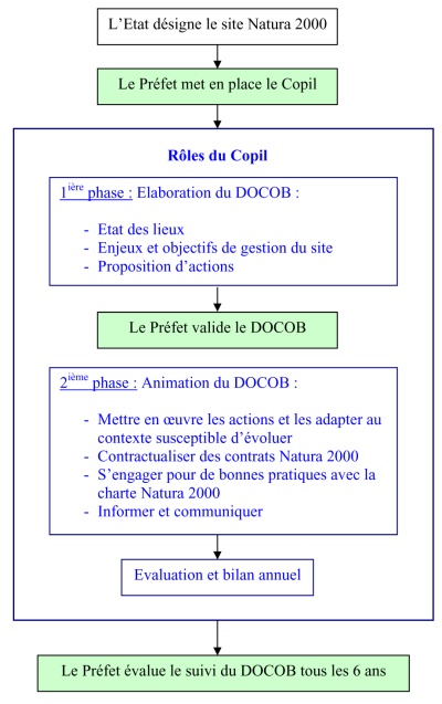 - l’élaboration d'un document d’objectifs. Il est à la fois un état des lieux du milieu naturel et des activités humaines, et la définition des objectifs et des moyens de gestion les plus adaptés au territoire.